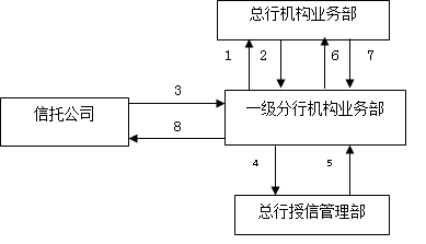5.代理信托计划业务审批。总行授信管理部按照全行一致的风险偏好和政策底线受理审查后,安排审批,并将审批批复意见发申报的一级分行;